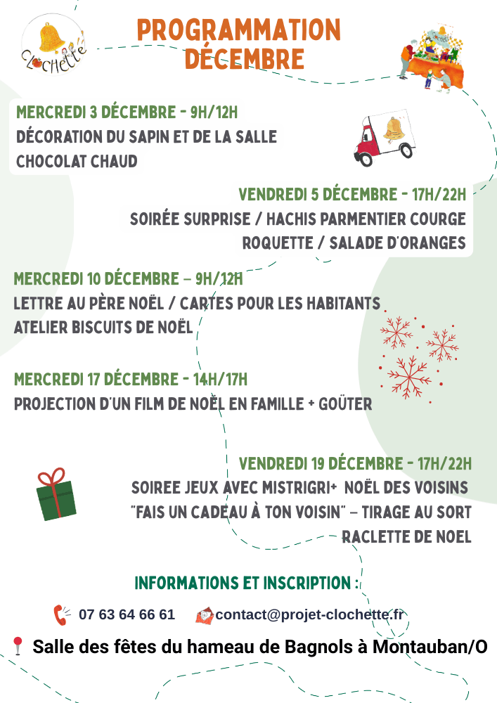 2025年9月10日Visite de Marie Pochon, députée de circonscription, du camion Guinguette épicerie itinérante...2025年8月21日Retrouvez le camion Guinguette épicerie itinérante Clochette sur France 3 Rhône-Alpes ! https:/...Depuis mi juillet, le camion Clochette s'est élancé sur les routes !2025年7月21日Besoin de vous ! L’association Clochette mène actuellement un diagnostic participatif pour...2025年6月14日Greg et Marie sont descendus au Pays Basque, chez David et Cyriaque, récupérer le camion aménagé....2025年6月8日Organisé avec la complicité des Lointaines, Du Festival du Maki et de la commission culture et...2025年5月28日Avec la contribution de Soliha et de Mistrigri Et la participation des familles et parents d'él...2025年4月8日Clochette organise un premier repas dans le cadre de Bien manger, Bien vieillir2025年3月13日PERMANENCE PRÊT DE JEUX TOUS LES TROISIEMES JEUDIS DU MOIS Ả LA SALLE DES FETES DE MONTAUBAN...Le dernier Samedis Jouons ! (et Mangeons) avec Mistrigri a été un tel succès que ça nous a donné...On parle de nous ! Ensemble ici - Baronnies met en avant le Projet Clochette dans leur...2025年2月17日Le prochain rendez-vous dans le cadre de notre partenariat avec Les Lointaines - Festival...2025年2月6日Clochette était à FERRANDI Paris, l’école française de gastronomie & de management hôtelier, aux...2024年12月15日Dimanche 15 décembre c’était la fête de Noël à Montauban/O, avec Les Lointaines - Festival...2024年11月30日Le premier test de commande groupé a eu lieu ce samedi, avec la distribution à Montguers. Pour...2024年11月8日🔔Il y a quelques mois, notre route a croisé celle de David Billy ; avec son associé, David...🔔 Cette semaine, nous avons eu la joie d’accueillir Gabi Teron, chargée de projet Alimentation et...Plus d'articlesL'équipe